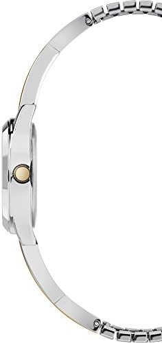 Brand, Seller, or Collection Name Timex Model number TW2R98600 Part Number TW2R986009J Model Year 2020 Item Shape Round Dial window material type Mineral Display Type Analog Clasp Expansion Band Case material Brass Case diameter 25 millimeters Case Thickness 8 millimeters Band Material Stainless Steel Band size Womens Standard Band width 12 millimeters Band Color Two Tone Dial color Silver Bezel material Brass Bezel function Stationary Special features Second hand Item weight 1.12 ounces Movement Quartz Water resistant depth 30 Meters Warranty Manufacturer’s warranty can be requested from customer service. Click here to make a request to customer service.