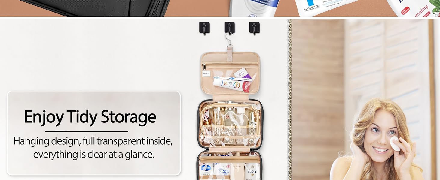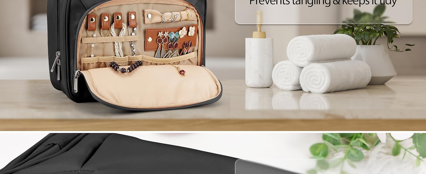 This is an excellent travel bag! Great quality for the price.Organize all your stuff and hang it on a towel rack or on back of the door. So easy to find what you are looking for... Don't need to clutter the hotel sink anymore