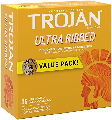 Ahhhh, that’s the spot. Trojan Ultra Ribbed Condoms are designed with deep ribs to seriously increase stimulation. Ideal for all kinds of sex, you can't go wrong with these ribbed condoms. Made with a silky smooth lube, Trojan Ultra Ribbed lubricated latex condoms have a special reservoir tip for extra safety, meaning all you and your partner need to worry about is what position you're going to try next. Designed with premium quality latex, these condoms have been electronically tested to help ensure reliability and protection against unplanned pregnancy and STIs. Trojan brand condoms have been trusted for over 100 years and are America's #1 condom brand*. Trojan brand lubricated condoms are made from premium quality latex to help reduce the risk of unintended pregnancy and sexually transmitted infections. Trojan brand condoms is committed to investing in public health efforts to support sexual health. *Data from AC Nielsen total AOC Latest 52 weeks ending 8/22/2020