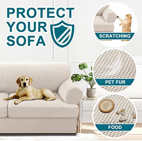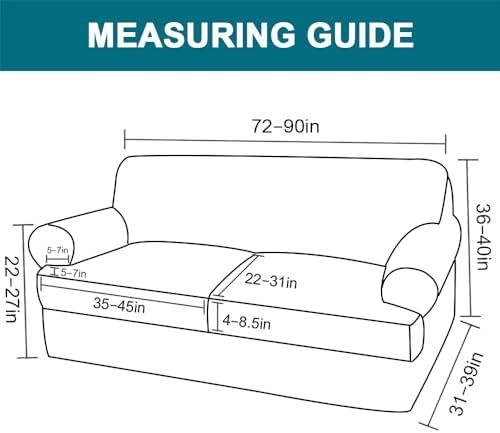 Bought this to protect my 3 T-Cushion sofa from the kitties and grandkids. Upon unwrapping it, the fabric was soft and seemed sturdy. It took me a while to figure out how to install the single piece onto my sofa even though there were labels on the area for the "Back" (which was extremely helpful!) as it seemed like it was going to be too small asmy sofa is at least 90 inches long and is a sleeper too. However, there was a lot of stretch and it ended up going on perfectly!I also liked the straps on the back of the T-Cushions to hold them in place. The color ordered was Grey, however it looks to me a little more like the "Dove" color in the description as my original sofa color seems darker then what I received. Very happy with this purchase.