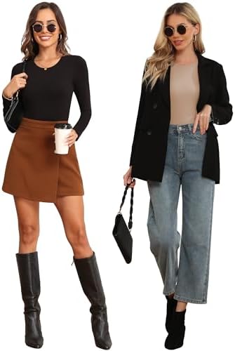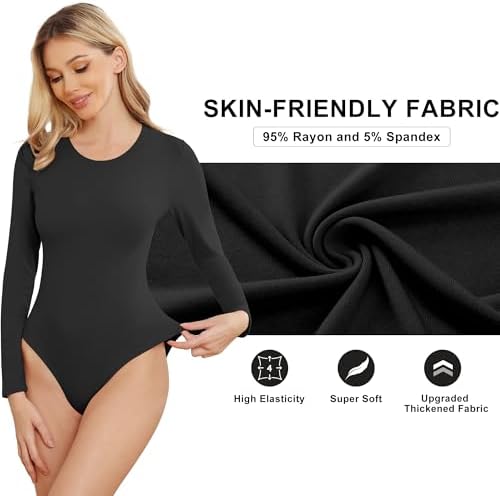TVKSOM 4/5 Pack Long Sleeve Bodysuit for Women Round Neck Casual Basic Stretchy Body Suits Tops