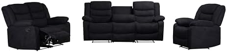 UBGO Living Room Furniture Sets,3 Pieces Recline Chair Set,Manual Reclining Sofas & Couches,Home Theater Seating Recliner with Cup Holders and Hide-Away Storage (Black,Sofa+Loveseat+Chair Set)