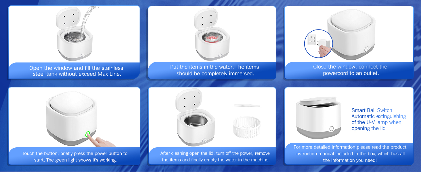 I must say, it's exceeded my expectations! This little powerhouse has transformed the way I clean my dental appliances and precious gems.Firstly, the design is sleek and compact, fitting perfectly on my bathroom countertop without taking up too much space. The operation is incredibly simple; just fill it with water and add a drop of cleaning solution, then let the ultrasonic waves work their magic.I've been amazed at how effectively it removes stubborn stains and buildup from dentures. After just one cycle, they come out looking and feeling as good as new, with no need for scrubbing or soaking.But the real surprise came when I tried it on my jewelry. I've always struggled to keep my rings and necklaces looking shiny, but this cleaner has made it effortless. Even intricate pieces with tiny crevices are thoroughly cleaned in a matter of minutes, restoring their brilliance.In terms of noise level, it's surprisingly quiet considering its powerful cleaning capabilities. I can run it in the background while getting ready in the morning without any disruption.Overall, I can't recommend this Ultrasonic Cleaner enough. It's efficient, easy to use, and delivers exceptional results every time. Say goodbye to tedious cleaning routines – this little gem does all the hard work for you!