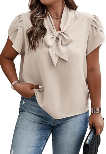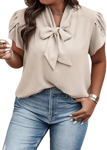 Verdusa Women's Plus Size Work Blouse Bow Tie Neck Petal Sleeve Blouse Office Work Shirt Top