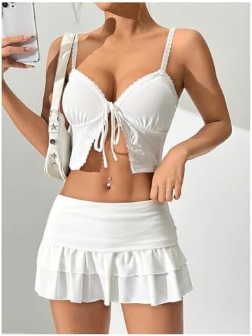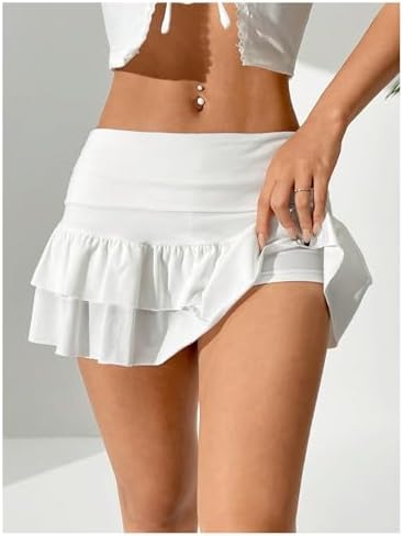 Verdusa Women's Ruffle Layered Mini Skirts Y2K Flared Flowy Short Skirt
