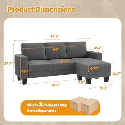 VICTONE Convertible Sectional Sofa CouchTIPS:1. The couch will be delivered in two separate packages. If the packages are not delivered at the same time, please contact us to confirm the logistics and tracking of invoices. Alternatively, you may wait a short period of time, as the other package will be delivered shortly.