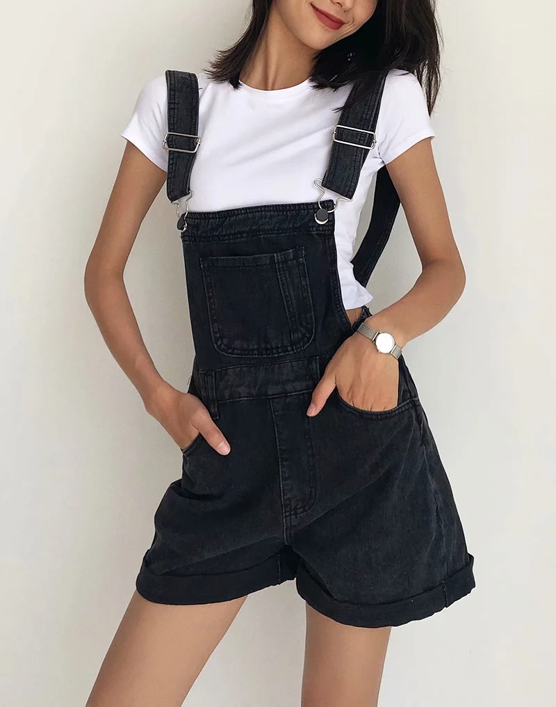 vintage sleeveless denim jumpsuit women high waist shorts Overalls sexy backless black playsuit casual jeans jumpsuit