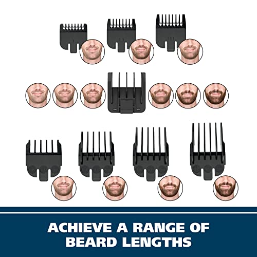 The Wahl Rechargeable Cordless Groomsman Beard & Nose Hair Trimmer is the grooming tool for precision styling and effortless beard maintenance. This versatile trimmer is designed to cater to all your facial hair needs, making it the ideal choice for every modern man's grooming routine. The self-sharpening blades of this trimmer ensure long-lasting sharpness and precision. Say goodbye to the hassle of constantly replacing blades; this Wahl facial hair trimmer is engineered to deliver consistent performance every time you use it. Included in this grooming kit are 7 individual guide combs, providing you with various cutting lengths ranging from 1/16" to 1/2". Achieve the exact length you desire with ease and consistency. Additionally, the 6-position adjustable guide comb offers further flexibility, making it easier than ever to craft your desired beard style, from short and rugged to long and refined. With its rechargeable cordless feature, this beard trimmer offers you the freedom to groom anytime, anywhere, without being tethered to a power outlet. Its 60-minute battery life on a full charge ensures long-lasting run time, allowing you to achieve the perfect beard style. Whether you're at home or exploring the world, this trimmer will deliver consistent and reliable performance due to its world-wide voltage compatibility; ensuring you always look your best, no matter where you go. Also included in this beard trimmer combo kit is a battery nose trimmer, specially designed for precise and painless nose hair trimming. No more worries about unwanted nose hair! Hygiene and convenience are at your fingertips, allowing you to keep your grooming tools in top-notch condition effortlessly. The nose trimmer head is fully rinseable, making it simple to clean and maintain. Simply remove the head from the trimmer body, rinse, and fully dry before reattaching. Ideal for mustaches, beards, touch-ups, and nose trimming, the Wahl Cordless Rechargeable mens beard trimmer is a great hair trimmer for men option. Crafted by Wahl, a trusted name in grooming appliances, this beard trimmer is designed to meet the grooming needs of men. Wahl beard trimmer for men have been used by professionals in the salon & barber industry since 1919. With self-sharpening precision blades & quality construction, Wahl clippers, shavers & trimmers deliver a smooth shave. If you have any questions about use or maintenance, don’t hesitate to contact us! The mens hair trimmer in packaging may not be the same as photo due to continuous improvements to the product. Note: Only rotory head is rinsable. We test the men's beard trimmer for cutting performance prior to packaging with a hygienic fiber. We do our best to clean the product to remove any testing particles, but it is possible a few may remain. They are not hair and can be simply wiped off.