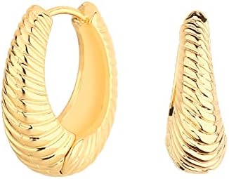 Wgoud Chunky Hoops Earrings with Shiny Thick Rhodium Plating Colors.