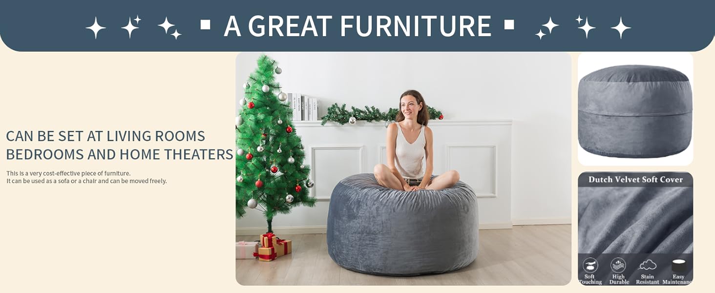 WhatsBedding Memory Foam Bean Bag Chair for Adults or Kids