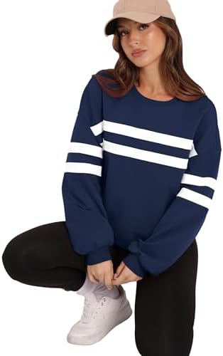 WIHOLL Womens Oversized Sweatshirts Casual Crewneck Long Sleeve Tops Comfy Striped Shirts Fall Fashion Pullover 2024