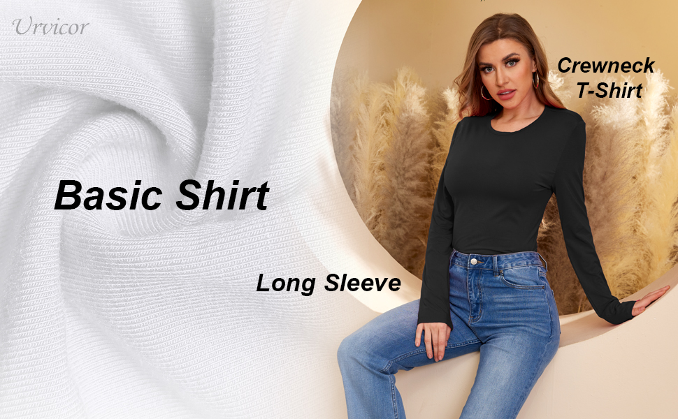 Urvicor Womens Long Sleeve Crew Neck Basic Slim Fitted Ribbed Knit Tops Shirts
