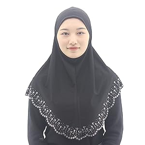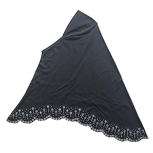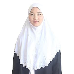 The extra-wide hem drapes over the top of the shoulders. Elastic under chin makes for a sure fit.