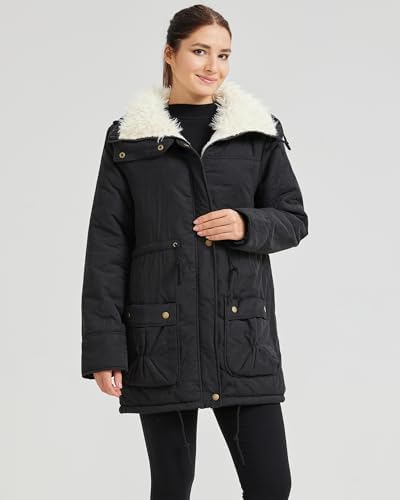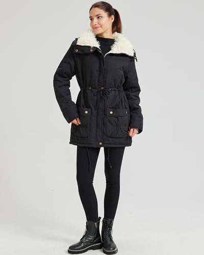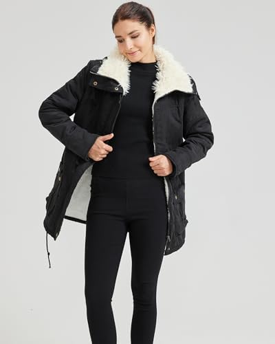 Women's Winter Mid Length Thick Warm Faux Lamb Wool Lined Jacket Coat