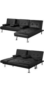 Functionalityand aesthetics meet harmoniously in this convertible futon bed. It cannot only provide a comfortable platform bed for 2 guests to sleep on,but it’s also a decent sofa and lounge for 3 adults in your home orapartment. This futon is made of wear-resistant polyester fabricupholstery, soft foam fills and stout chrome-plated legs, which caneasily hold up to 350kg/772lb. The two handy side-mounted USB portsoffer even more convenience to charge your electronics without leavingthe comfortable seat. Simple assembly is needed.