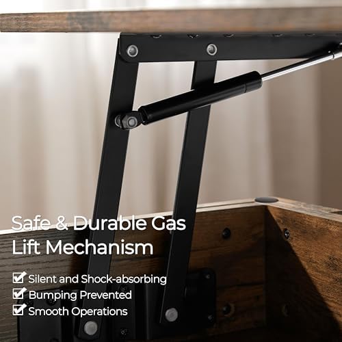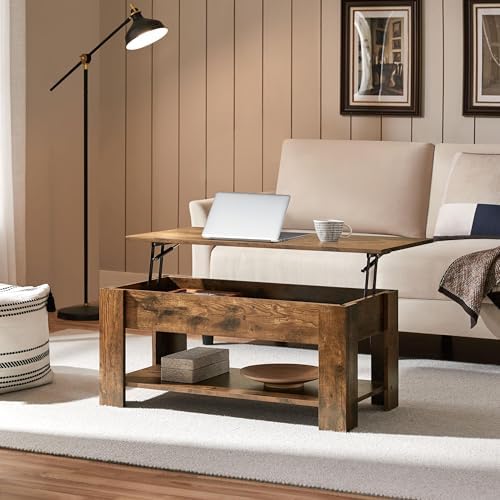 Yaheetech lift top coffee table a cool and practical table that is designed with a lift top, which can be easily adjusted to a suitable and comfortable height to use a laptop, write or dine while sitting on the couch. Under the tabletop, there is a large storage space measured L33.9xW15.4xD4.2’’ for keeping your daily used items handy and clean. Made of selected P2 MDF and built in solid structure, our coffee table with the ability to hold up to 77lb in total, strong and sturdy enough for your everyday use.