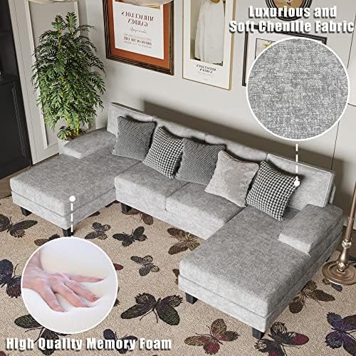 YESHOMY U-Shaped Sofa Feature: YESHOMY Sectional Couch Living Room Sets, Chenille Fabric U-Shaped Sofa with Double Chaises, Gray Washed. Specification Color: Gray Washed Material: Wood, Chenille Fabric, etc Package Dimensions:110"(L) x 44.1"(W) x 33.4"(H) Package includes: A sofa A tool kit A manual of installation and usage Notice: There may be some differences between photos and items in term of color because the influence of lighting during the shooting or the settings of the computers’ display screen.
