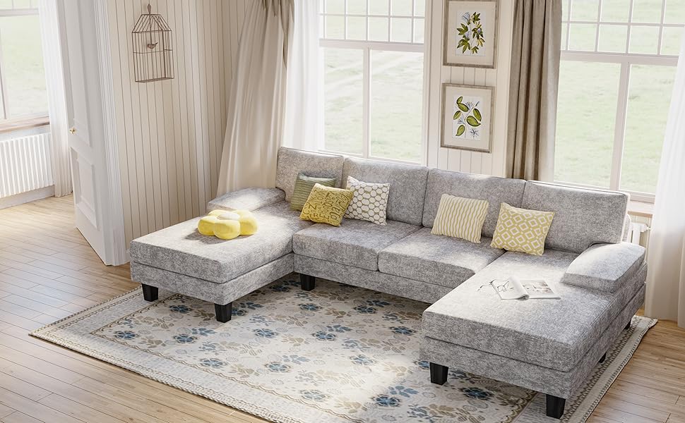 I was a bit apprehensive about buying a $400 couch off Amazon, but wow, this couch is fantastic! It really wasn’t difficult to put together: most of the time is just spent unpacking the boxes. It is very comfortable as well. It’s a bit firm, but I like a firm couch. Also the fabric is absolutely perfect. We have a cat who destroyed our last couch, and the chenille fabric is woven tight enough for her to not get her claws in. She has scratched it several times and hasn’t made a single tear, or any visible loose threads. This thing is also huge! My 6’3” husband and I can both fit on the couch comfortably with room to spare. The only small complaint is that the cushions don’t attach to the back of the couch, but I put adhesive Velcro on and it’s been perfect ever since. This is the perfect couch for that price!