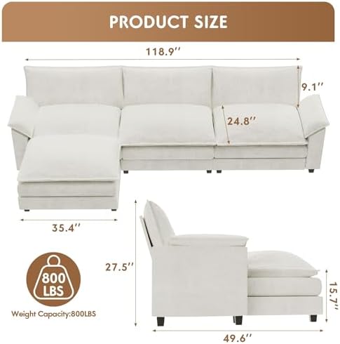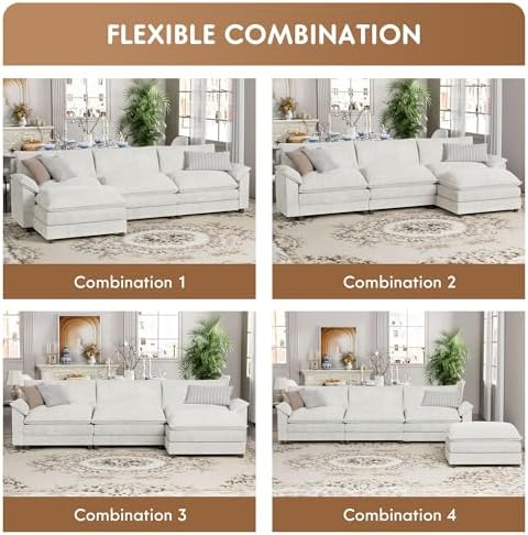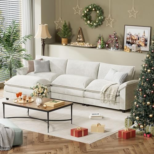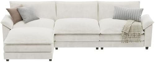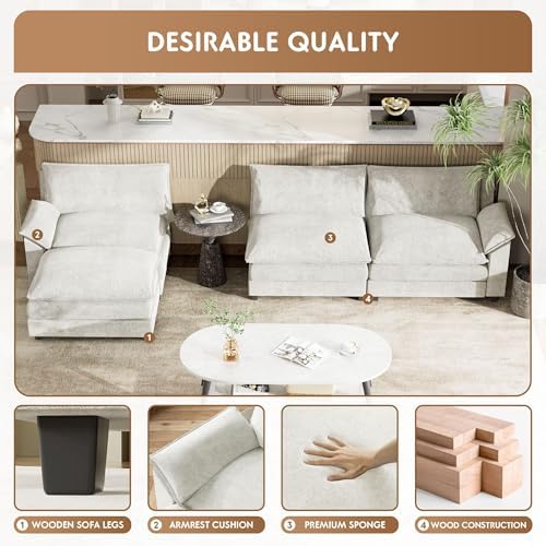 YESHOMY Sectional Modular Sofa, L Shaped Chenille Fabric Couch with High Supportive & Soft Sponges and Removable Ottoman, Sleeper Comfy Upholstered Furniture for Living Room, White