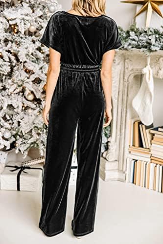 YMDUCH Women's Casual Short Sleeve Belted Long Wide Leg Pant One Piece Jumpsuit
