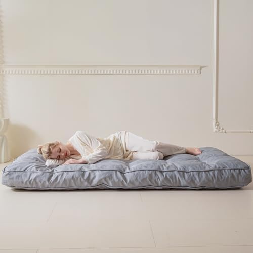 This futon is very comfortable, but still strongly and sharply smells of chemicals after almost a week. I'm not expecting the smell to go away, unfortunately, and once you buy this thing, there's a 0% chance you can return it just due to transportation. I was concerned it was too small for my futon at first (and it's not quite as big as the old full mattress I had on it) but after I steamed the very deep wrinkles in it, it fits on the frame nicely.The buttons were clearly made for another type of futon because they're velvet and don't match the texture of the rest of the fabric whatsoever (and they sell velvet mattresses). It's very odd looking.