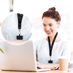 The black cell phone lanyard pad is made of high-quality polyester fiber material, more durable and not easy to break.can serve you for a long time.