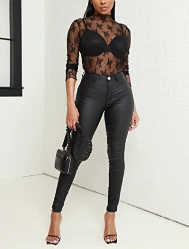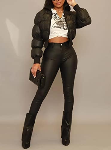 Zebaexf Faux Leather Leggings for Women, Black High Waisted Stretch Leather Pants