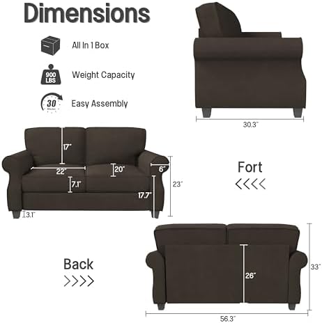 This well-designed 2 Seat Small Sofa Couch Furniture is made of sturdy wood frame and high resilience foam for better resilience and softness, which can easily and stably support up to 900lbs.