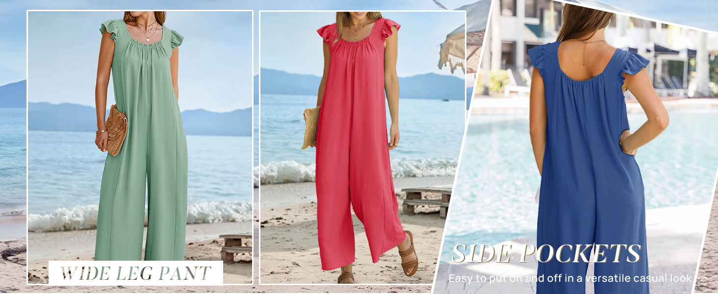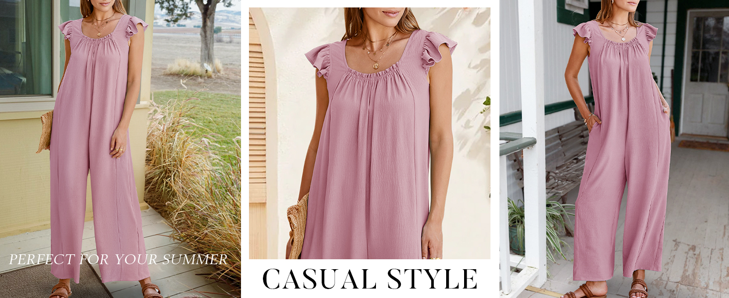 ZESICA Summer Ruffle Sleeve Relaxed Fit Pant
