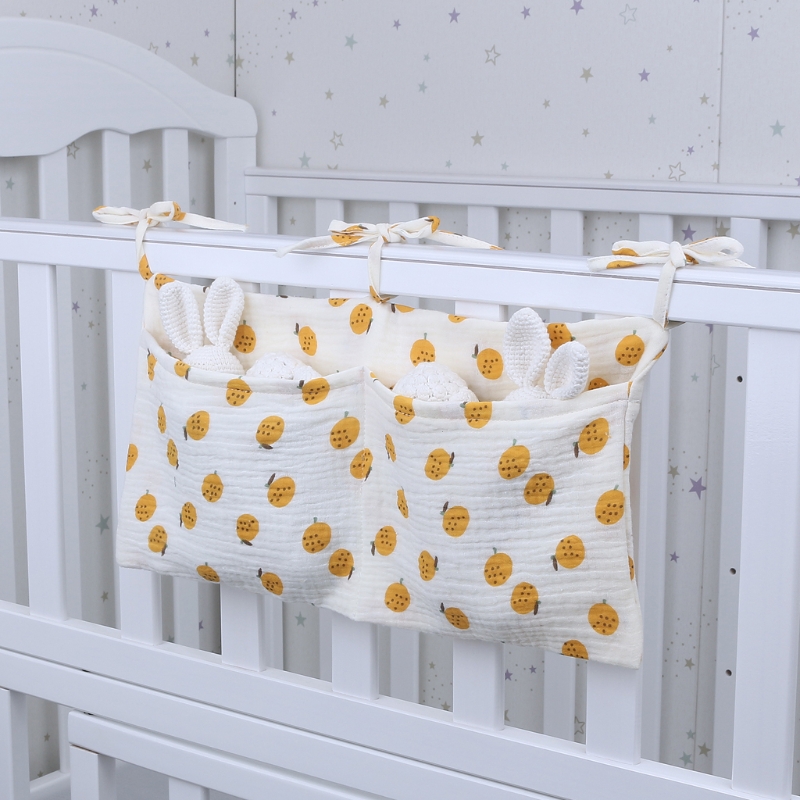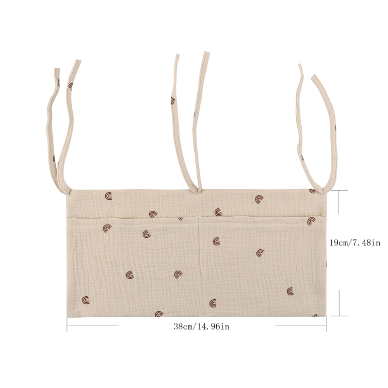 The Cotton crib hanging storage bag is suitable for diapers, pacifiers, teethers, baby wipes, diapers or small toys, etc. You can also put toys, books or whatever you want there.