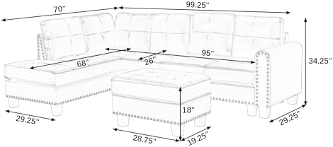 Leather Sectional Sofa with Ottoman Small Sectional Sofa for Living Room, Sectional Couches L-Shaped with Storage Ottoman, Small Space Furniture Sofa with Convenient Cup Holder Perfect solution for storage and accommodating more guests. The detached ottoman provides access to storage for seasonal blankets, extra pillows, and much more and then perfectly molds into the Sofa for a quick Filler: Foam Main Color: Charcoal Grey Main Material: Linen Product Dimensions Assembled Length (in.): 71 Assembled Width (in.): 98 Assembled Height (in.): 33 Weight (lbs.): 175.5 Package Size Sub-item 1: Package Quantity: 1 69.3 * 29.2 * 13 in. 82 lbs. Sub-item 2: Package Quantity: 1 67.5 * 29.2 * 13 in. 87 lbs. Sub-item 3: Package Quantity: 1 29.2 * 19.7 * 13 in. 24.5 lbs.