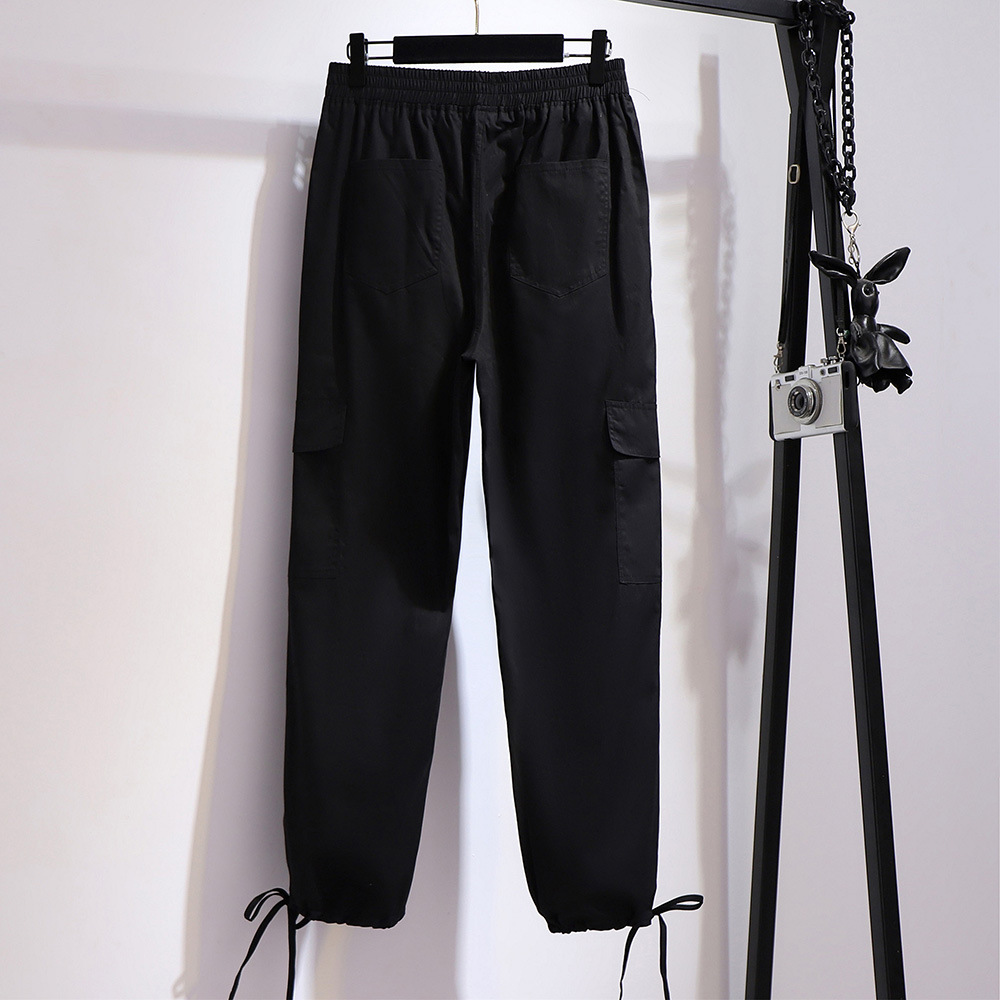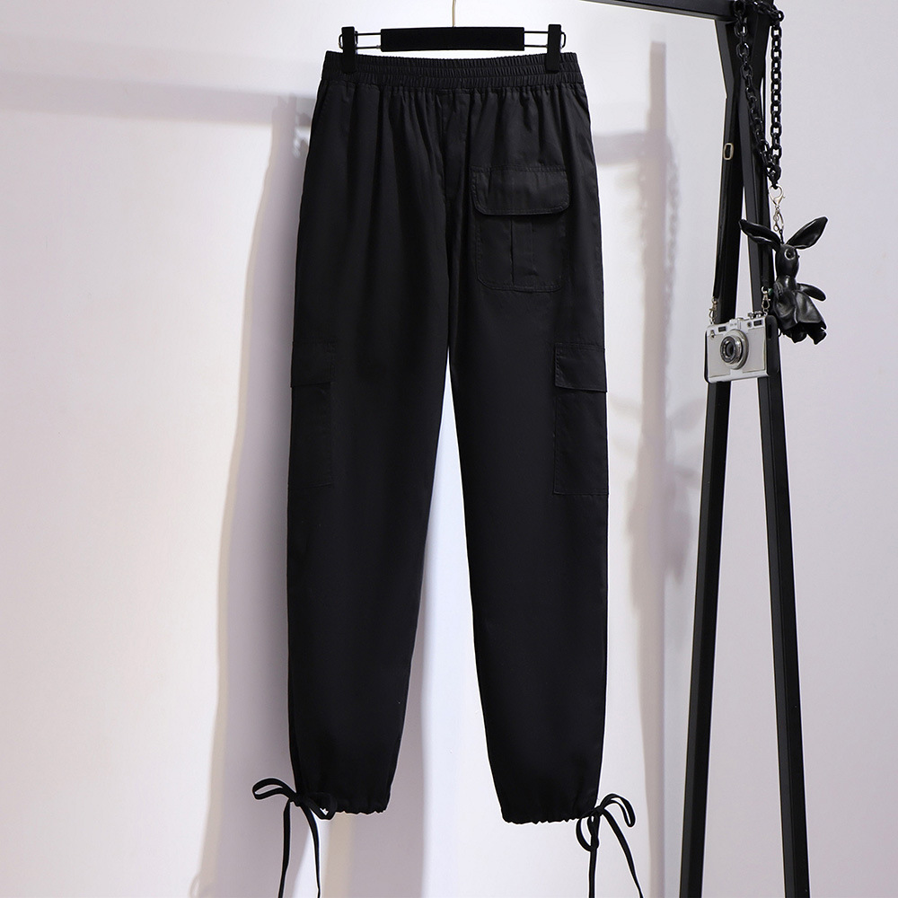 150Kg Plus Size Women's Spring Summer Drawstring Cotton Cargo Pants Loose Casual Cropped Trousers 5XL 6XL 7XL 8XL 9XL 3 Colors