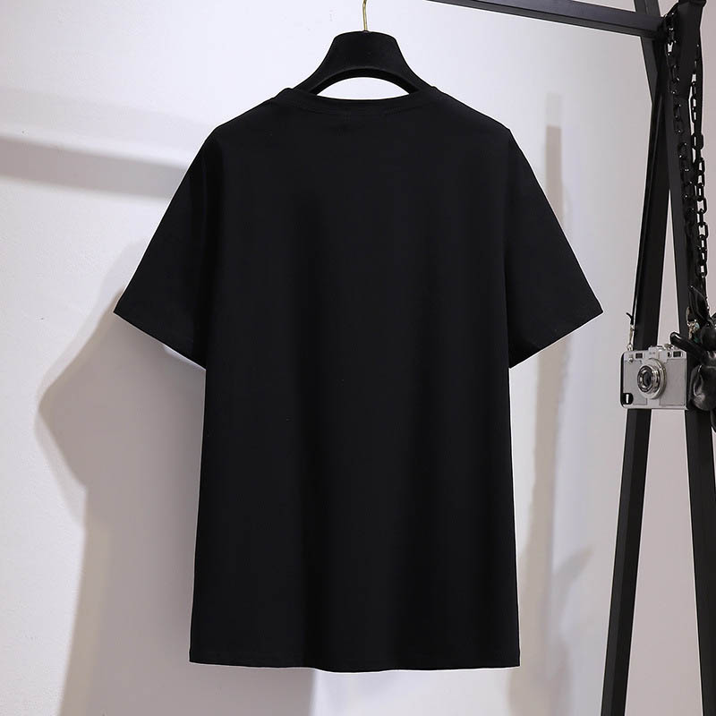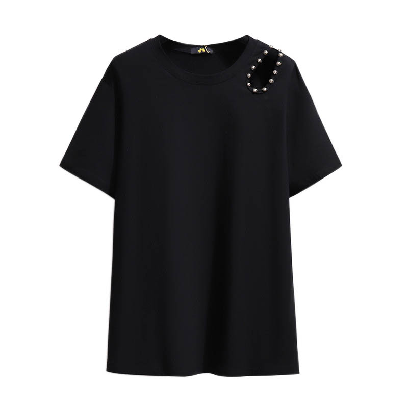 150Kg Plus Size Women's Summer Loose Rivet Hole Short-Sleeved T-Shirt Bust 157cm 6XL 7XL 8XL 9XL 10XL Round Neck Top Black Gray