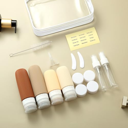 This compact silicone travel kit is very functional. It comes in a handy carrying case and comes with labels so you don't have to try to remember what is in each container. This might seem trivial, but I recently reused some travel bottles and didn't check them before I left. When I got to the hotel, I realized it wasn't shampoo and conditioner but body wash and lotion. Always label :)! There's 2 different sizes of silicone bottles (4 bottles total) all different colors, as well as 2 spray bottles, 4 small containers, a scrub brush and other accessories. I highly recommend this travel set.