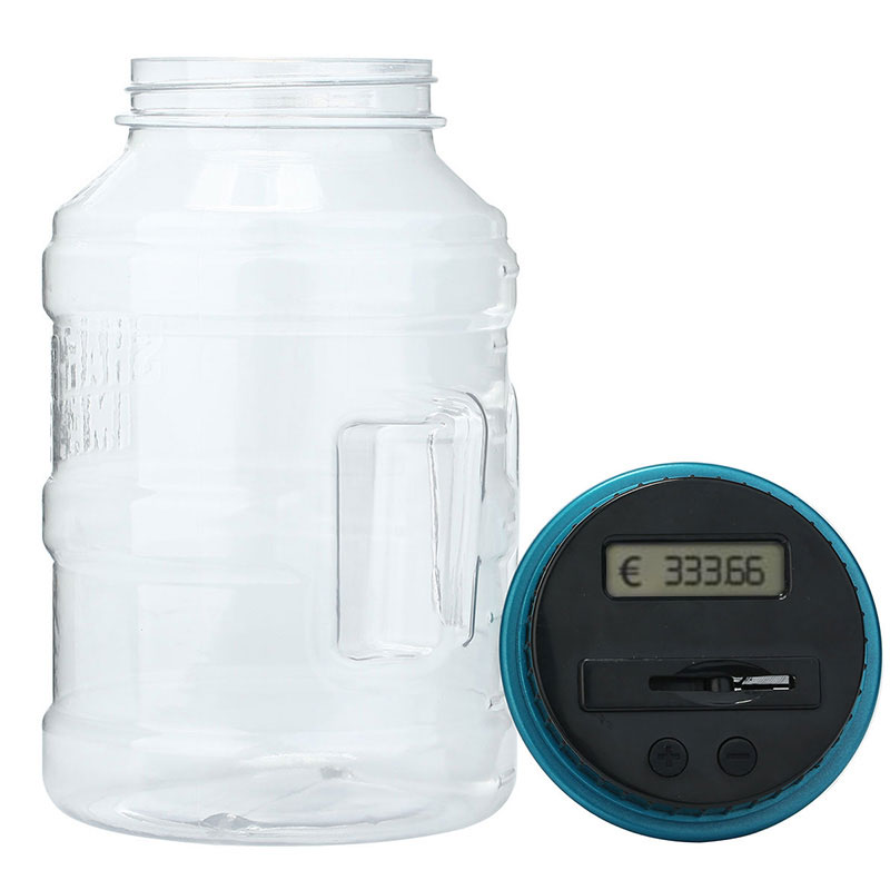 This clear jar has a LCD screen on a lid helps count your coins as they slip through the slot.