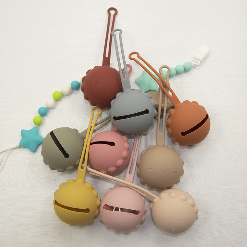 2 Made from a soft silicone with a convenient strap, this pacifier case is easy to attach to a stroller or diaper bag.