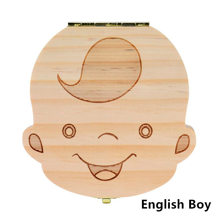 1PC Spanish English Baby Wood Tooth Box Organizer Milk Teeth Storage Collect Teeth Umbilical Cord Save Gifts for Kids Boys Girls