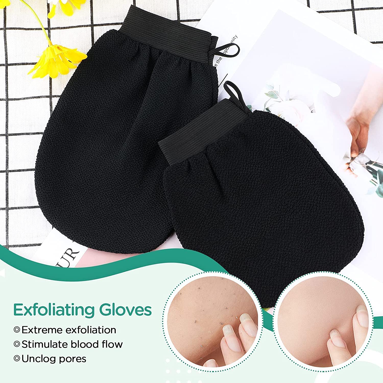 << Practical to use: Promote skin metabolism, increase blood circulation, the exfoliating mitt helps you smooth your skin, giving you a good using experience, help you keep your skin in a good condition