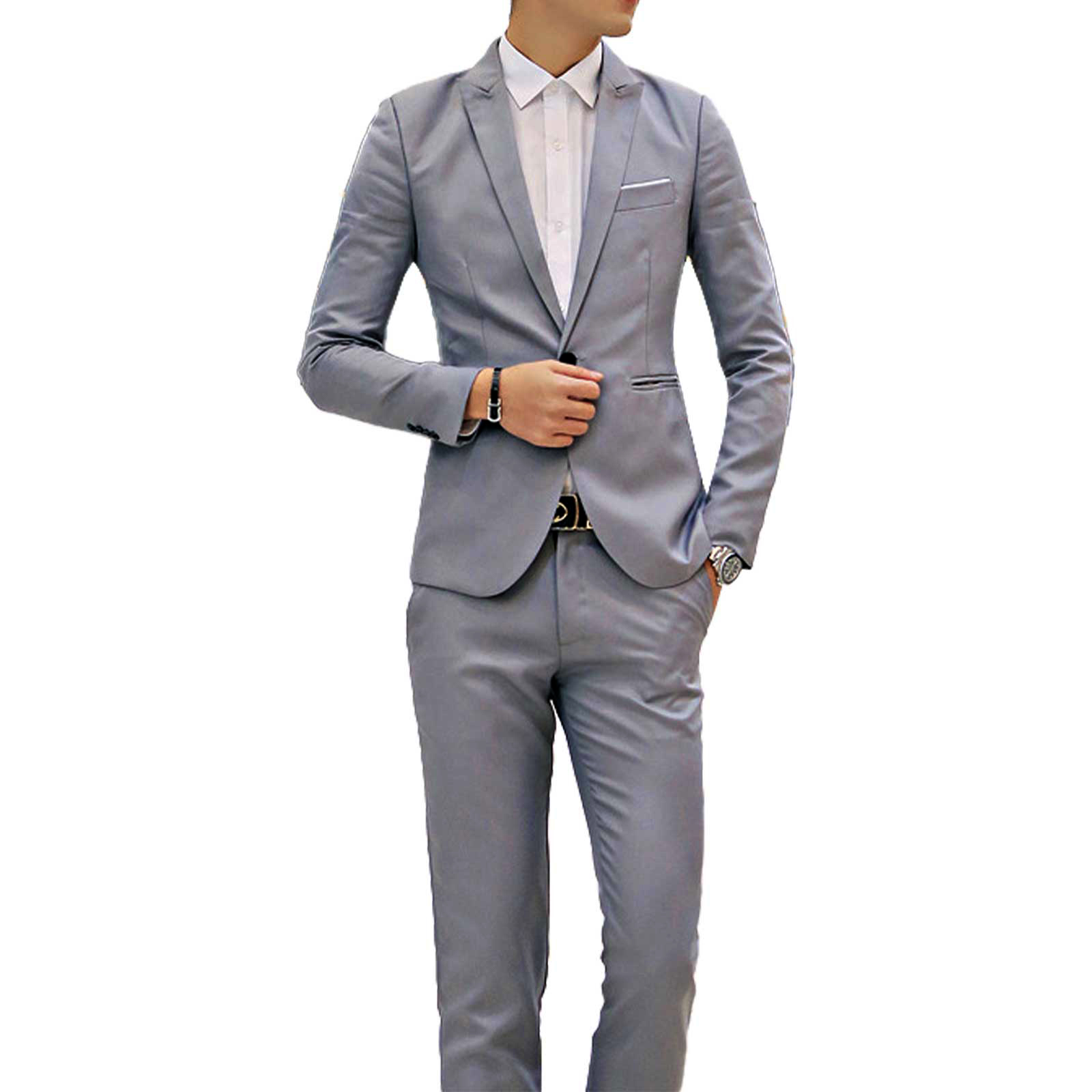 2Pcs Men Gentleman Suit One-Button Notch Flap Pockets Lapel Long Sleeve Jacket Blazer Long Pants Set for Office Meetings