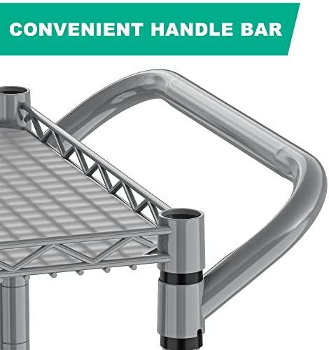 Equipped with 1 inch diameter poles, this rolling utility cart is heavy duty to store and transport heavy and bulky loads. High quality chrome anti-rust surface shelves.
