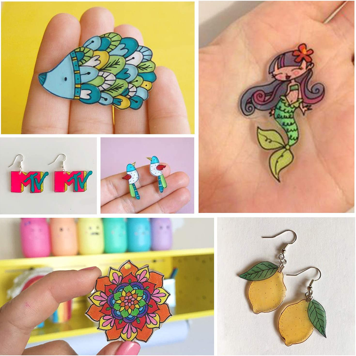 3. These shrink films are suitable for DIY pendants, earrings, keychains, jewelry, buttons, gift tags, zipper pulls, bookmarks and ornaments, endless fun of making shrink.