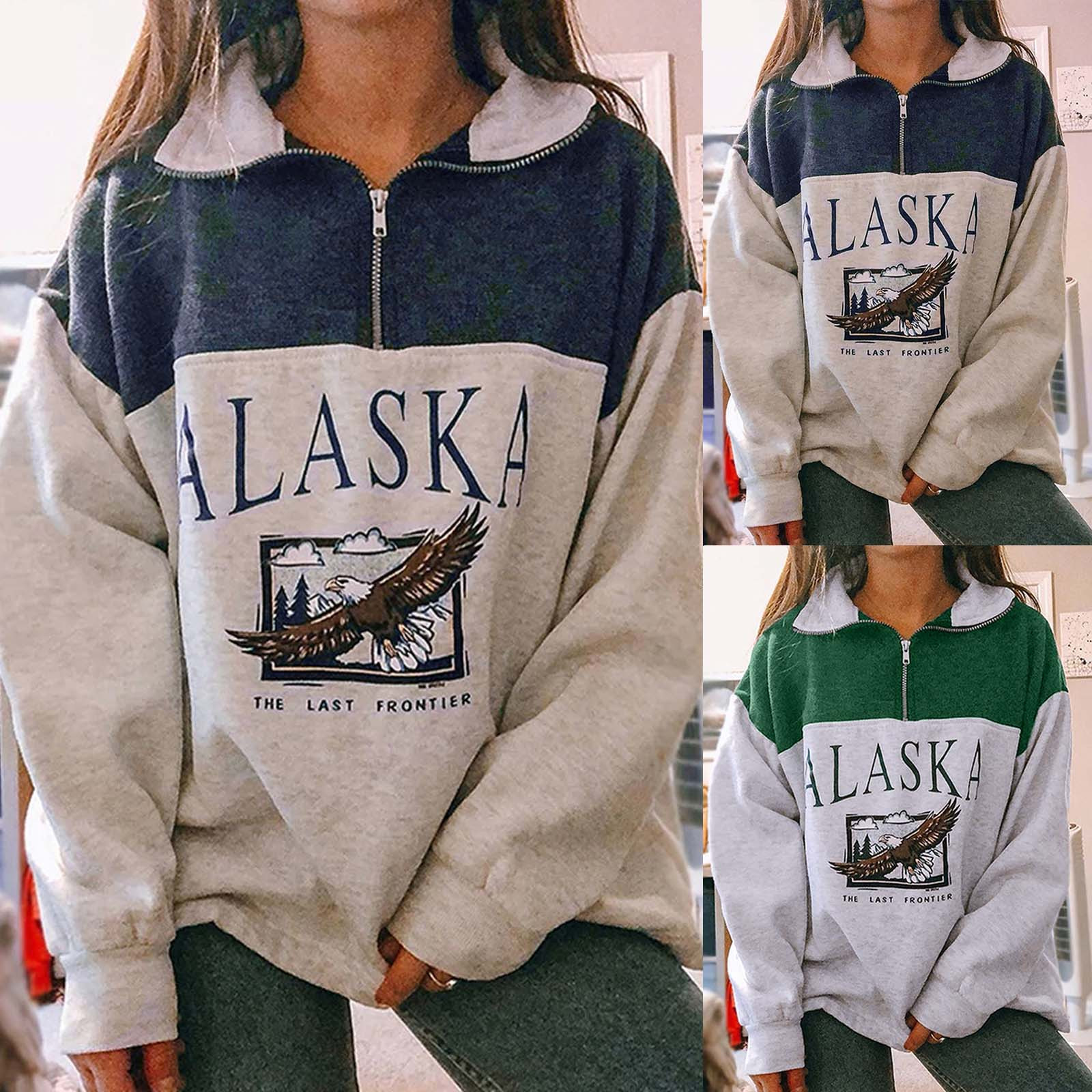 Women's Casual Long Sleeve Printed Zipper Printed Long Sleeve Tops Sweatshirts