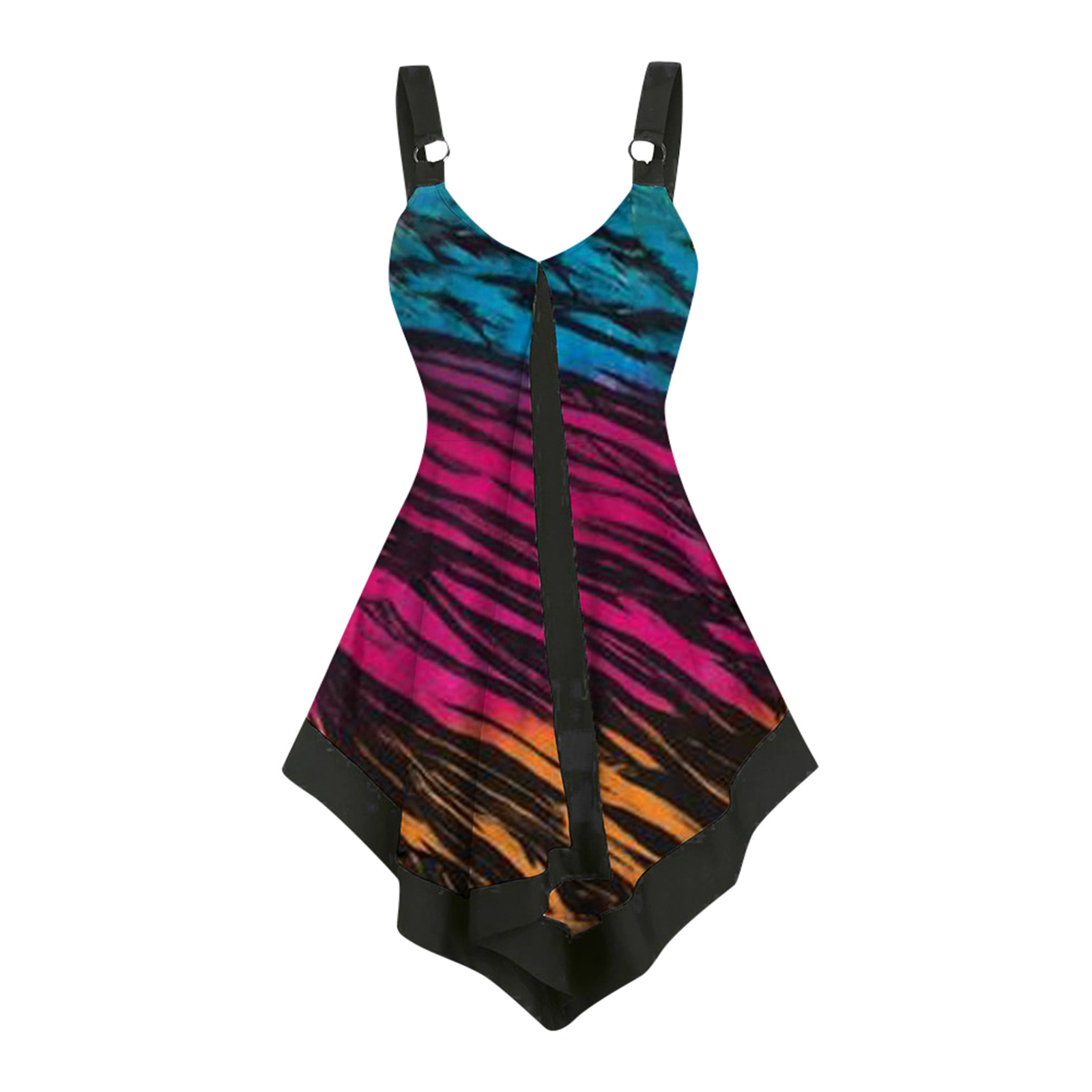 Womens Fashion Tie-dye Tank Tops Ladies Sexy Cami Swing Vest Skirt Clubwear