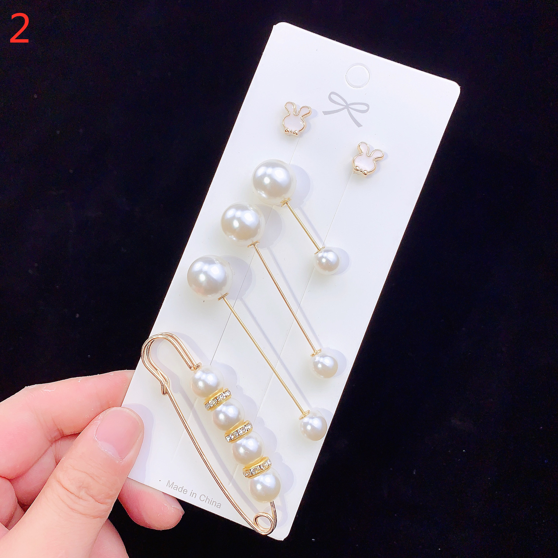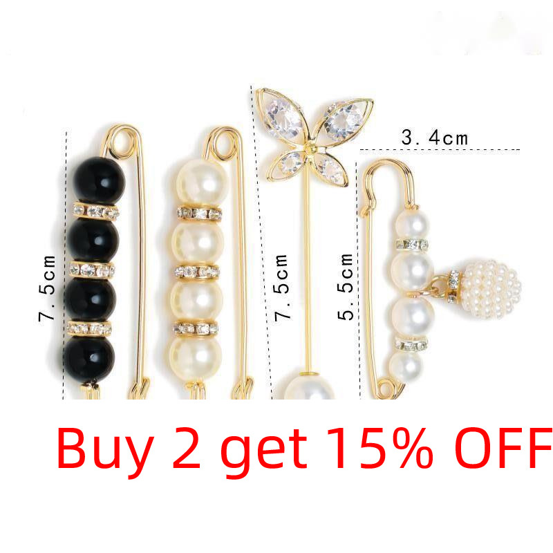 6pcs 4pcs/set Pearls Brooch Tightening Waistband Pin Smaller Openning Bottom Brooches Rhinestone Metal DIY Finding Accessories