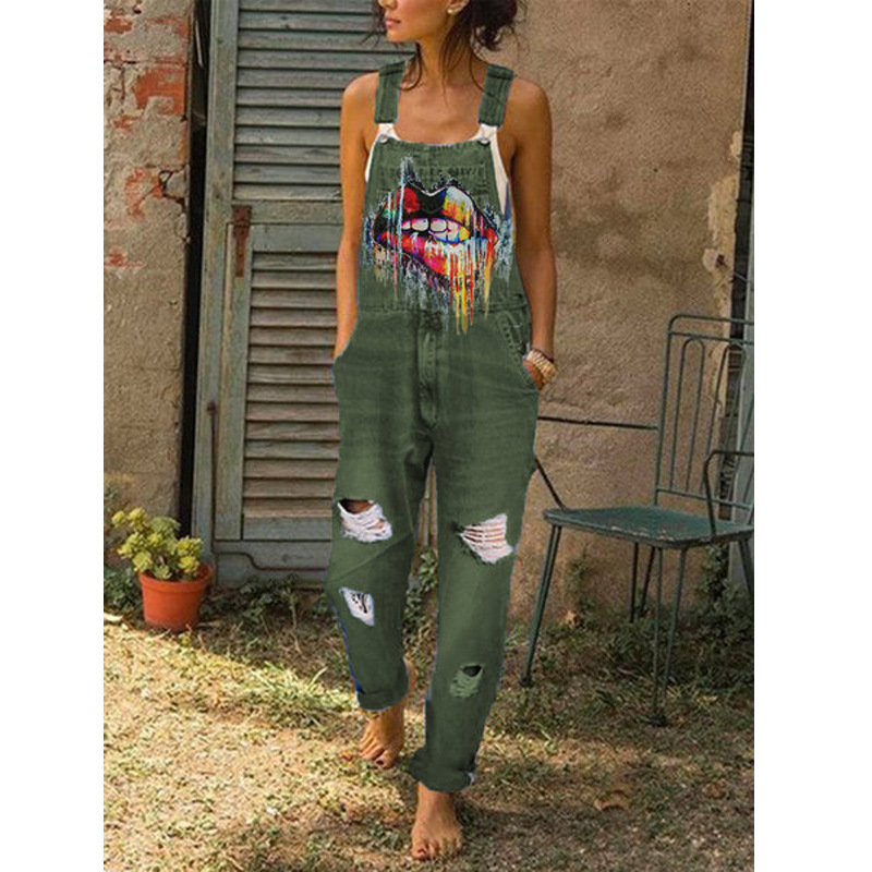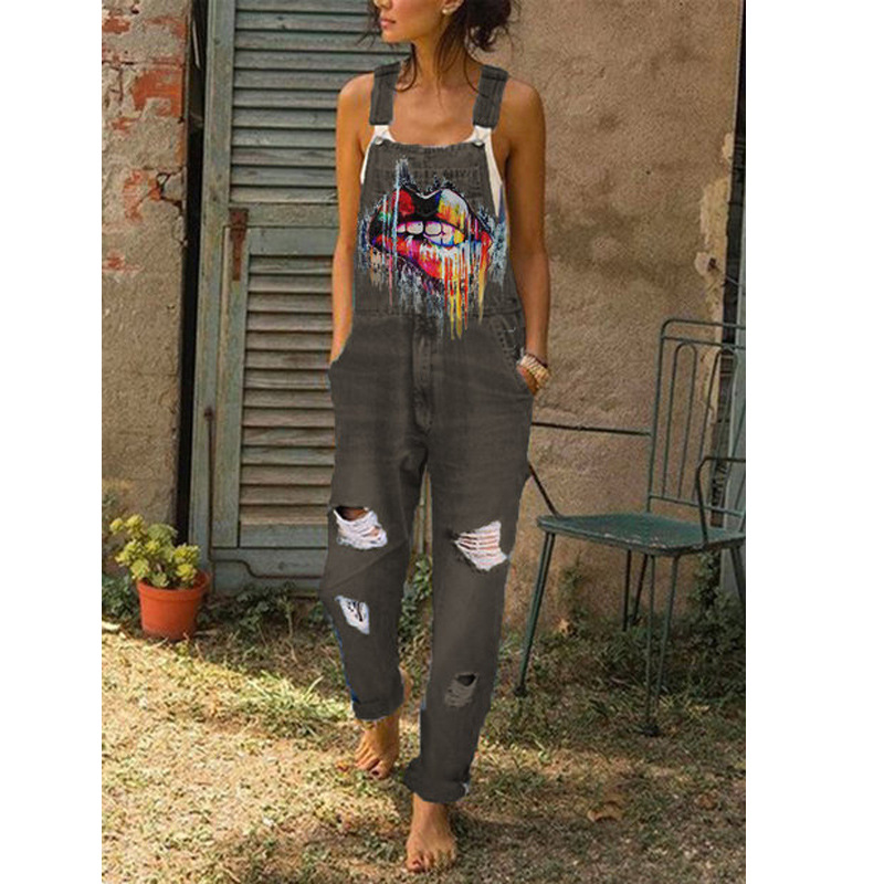 5XL Jeans Women Overalls Tongue Print Streetwear Denim Pants Loose Trouser Female Vintage Jumpsuit Pantalones De Mujer