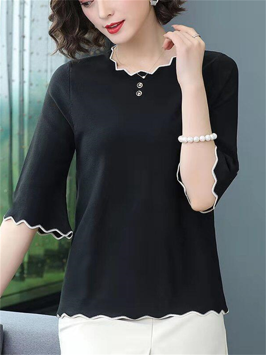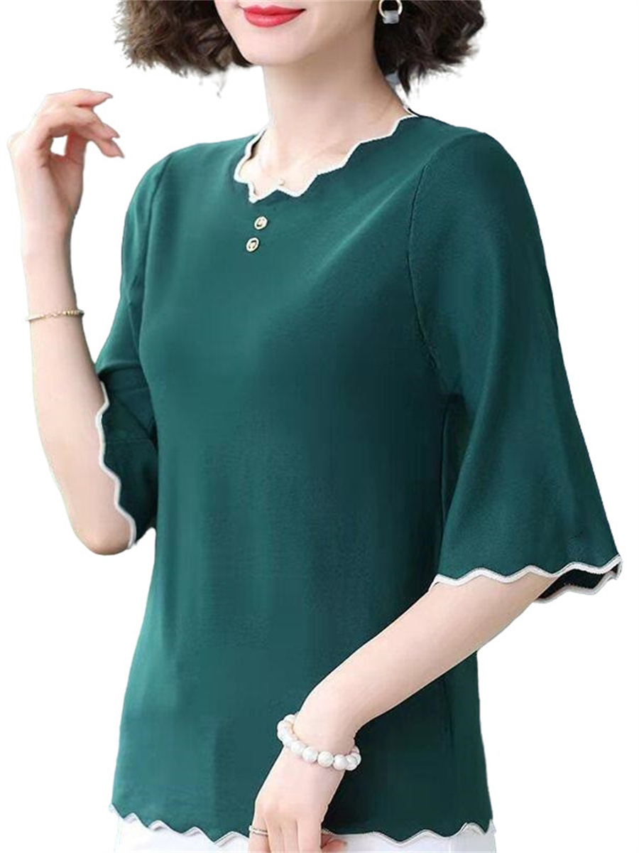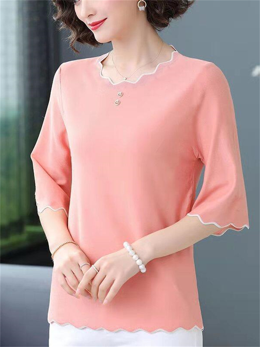 5XL Soft Women Spring Summer Shirts Lady Casual Short Sleeve O-Neck Collar Solid Color T-shirt Blusas Tops TT2009