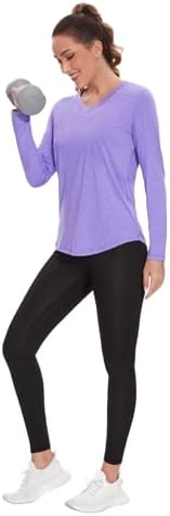 Ultra soft polyester and spandex fabric,naturally breathable, lightweight, quick dry, stretchy and comfortableto wear. Womens long sleeve t shirts are designed for yoga, exercise, fitness, gym,running, any type of workout or everyday use. They combine fashion,function and performance.