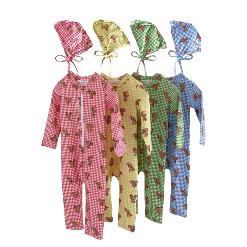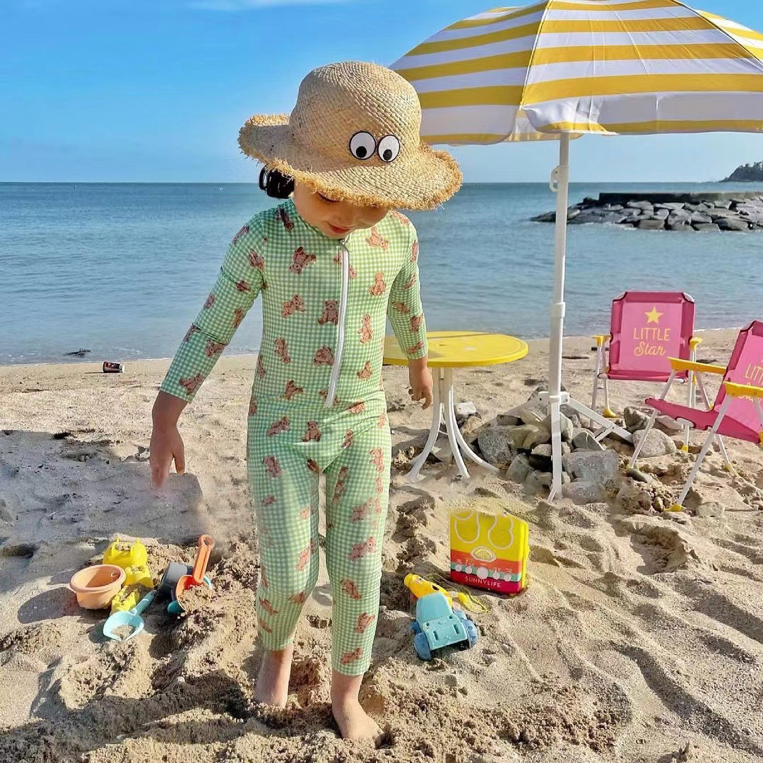 7973 Baby Girl Swimwear Children Swimsuit With Hat Summer Long Sleeve Bodysuit Baby Swimsuit Boy 1-7T Kids Swimsuit