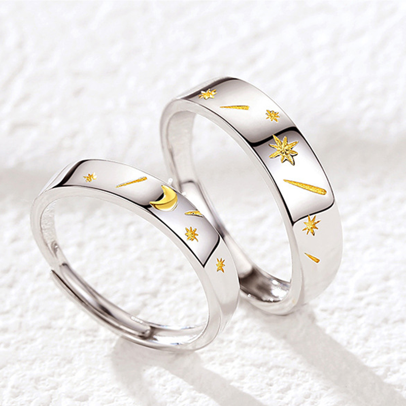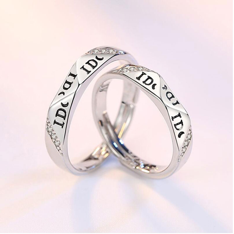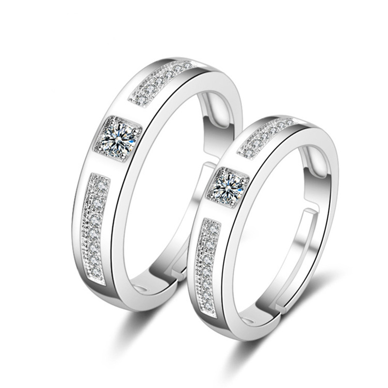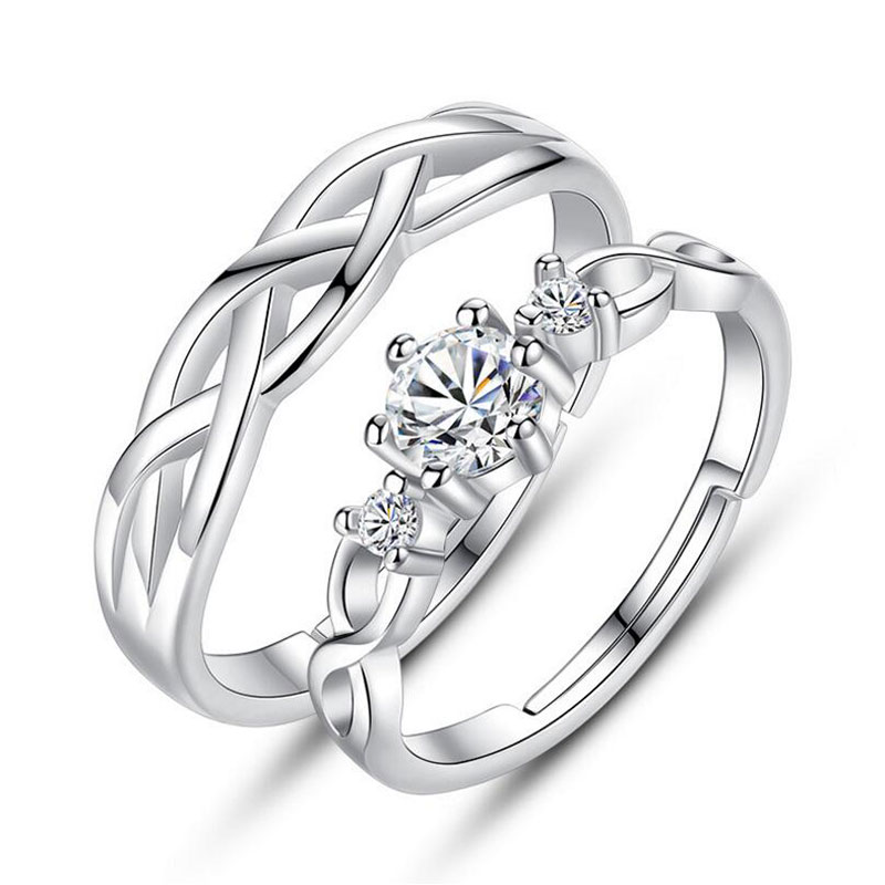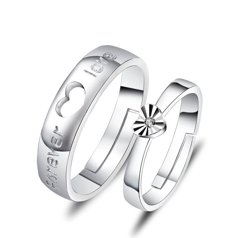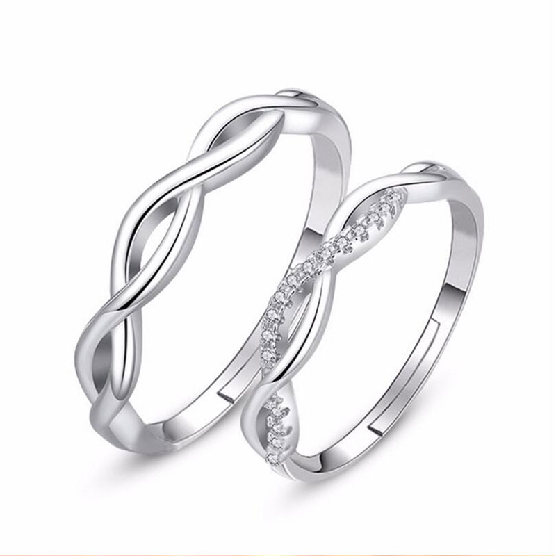 ANENJERY Silver Plated Couple Ring For Lovers Forever Endless Heart Zircon Ring Adjustable Open Ring Wedding Engagement Jewelry
