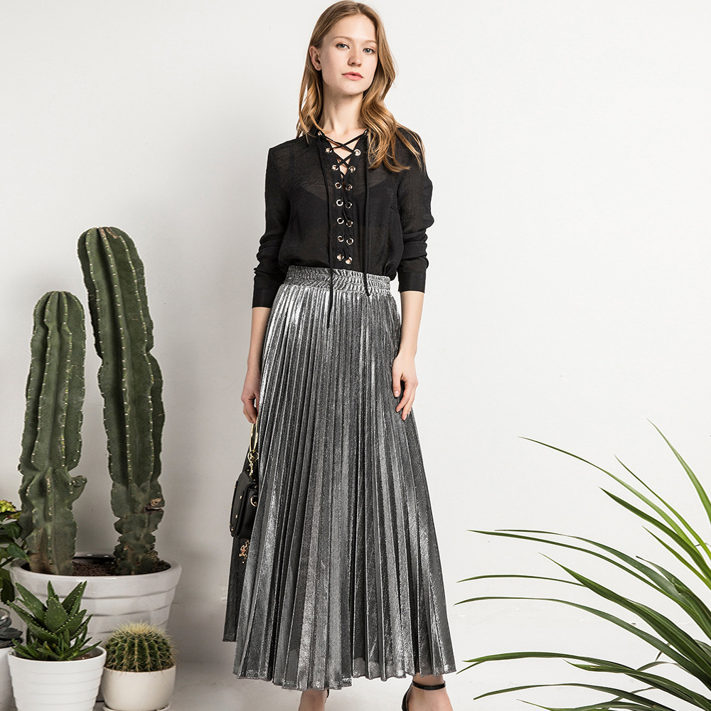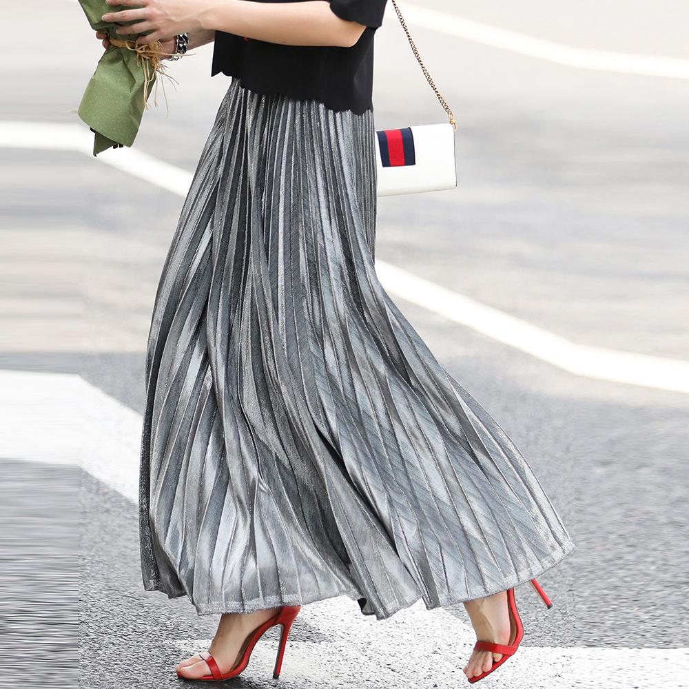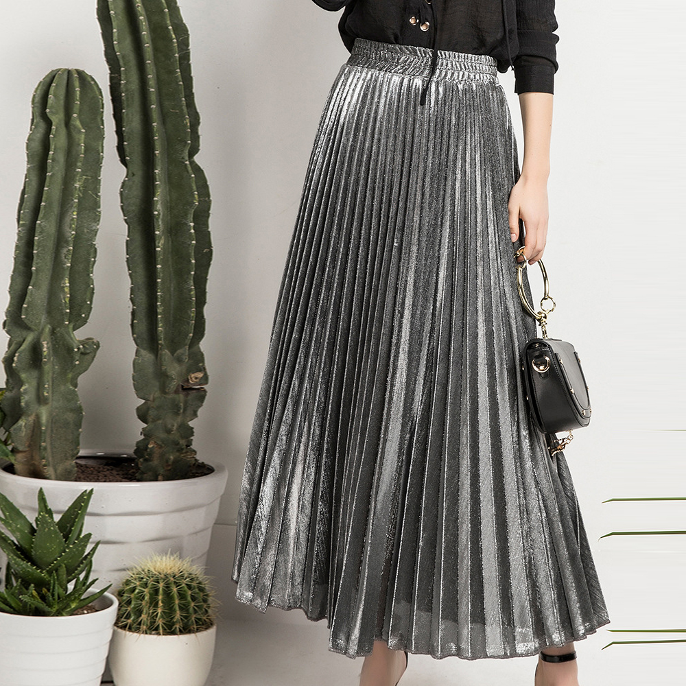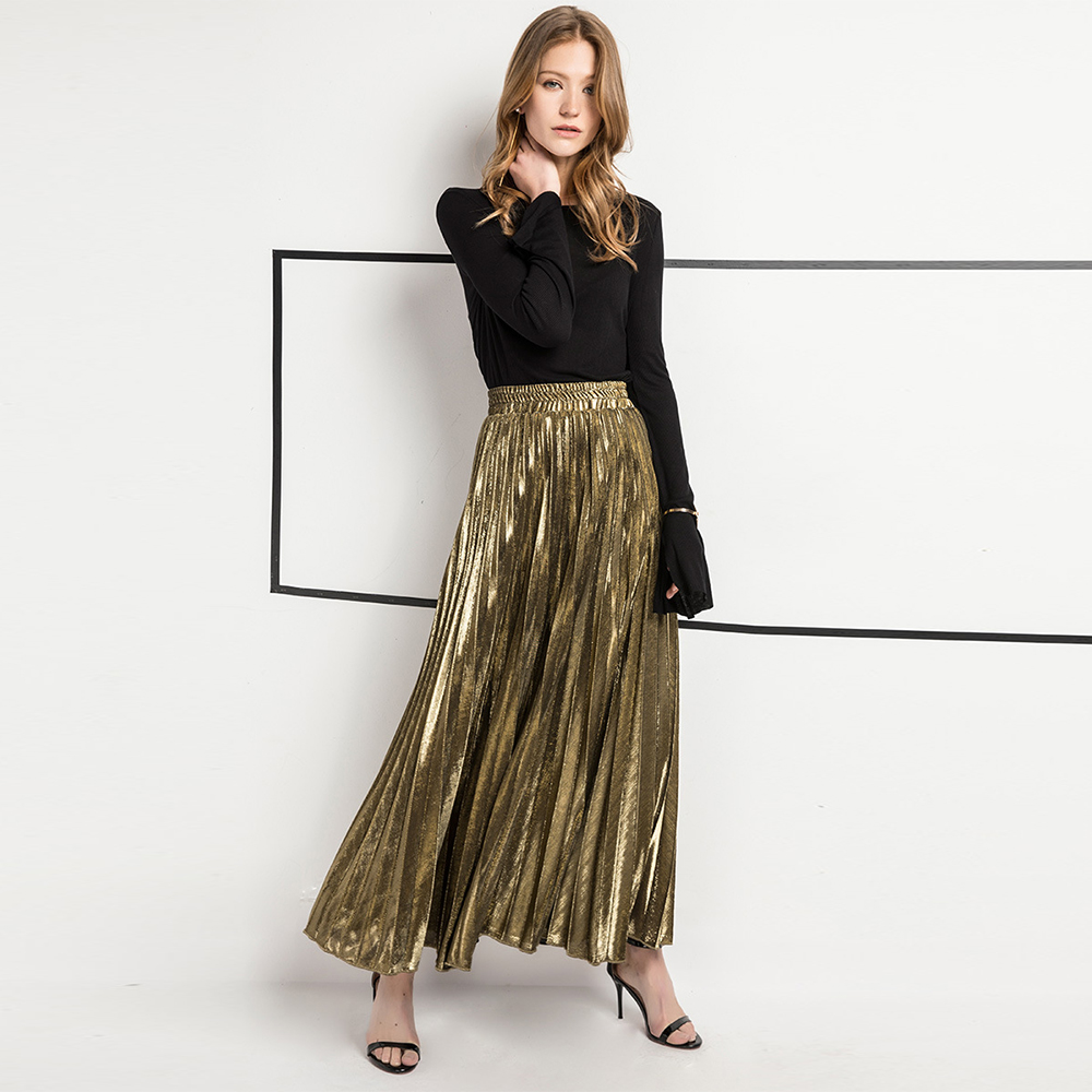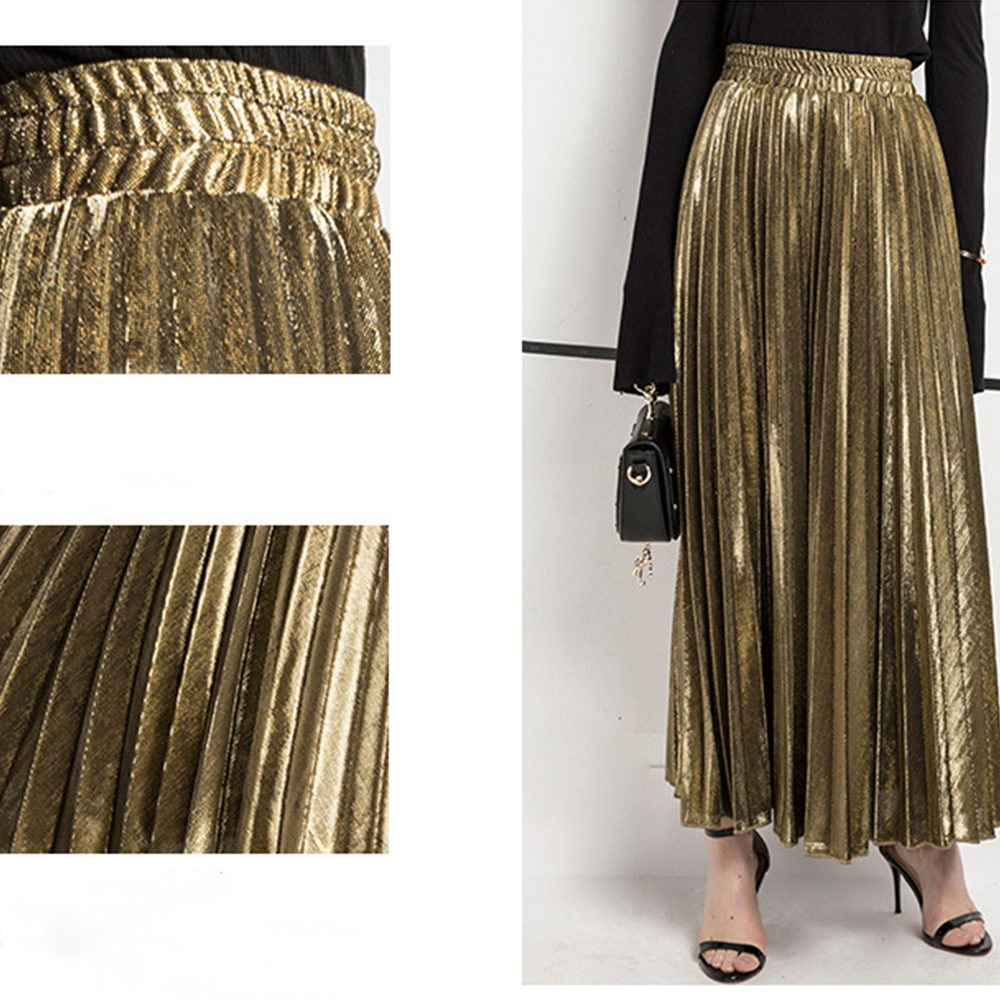 Arrival Women Elegant Satin Pleated Autumn Winter Party Office Solid Color High Waist Muslim Long Chic Maxi Skirt